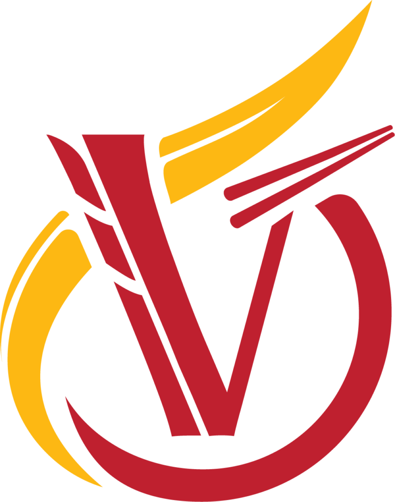 – Biểu tượng: Sự kết hợp giữa chữ “V” (Việt Nam), đôi đũa, bát cơm và dải lụa vàng, tượng trưng cho nền văn hóa ẩm thực đặc sắc, đồng thời thể hiện khát vọng vươn tầm quốc tế.